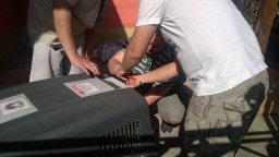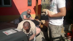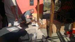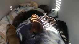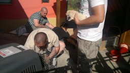 A mai napon a XVIII..kerületi Önkormányzat állattartással foglalkozó munkatársa Kajó Cecília telefonon kért segítséget, hogy a kerületben lévő egyik étterem udvarán párnapos kiskutyák vannak a tűző napon. A helyszínre érve valóban találtunk egy kartondobozt benne 6 kiskutyával. Az anyjuk nem tudta őket táplálni, mert olyan meleg volt a doboz, hogy 3 percnél többet nem tudott a kölykökkel maradni. Miután a helyszínre ért a hatósági állatorvos megállapította, hogy valóban nem megfelelő a tartásuk, ezért a kiskutyákat el kell szállítani. Amíg vártuk a háztulajdonost addig egy ismerőse odaért és közölte, hogy a ház mögött is van még egy kutya annak is vannak kölykei. A tulajdonos megérkezése után hátul találtunk 1 anyát 4 kölyköt, elöl pedig egy anya volt 6 kölyökkel. Összesen 12 kutyus volt. Közben érkezett pár telefonhívásunk , az egyik Lakos György volt, miszerint a csapat egyik felét el tudná helyezni a Rex állatotthonban. Hatalmas segítség volt és hálásan köszönjük ezúton is. Illetve szeretnénk megköszönni Nonónak, Tündinek, Tibinek,és Jodának akik a helyszínre sietek és szállították a kutyusokat. Hálás köszönetet szeretnénk mondani a kerületi Rendőrkapitányság két a helyszínen tartózkodó és intézkedő járőrének és az ügyeletes tisztnek lelkiismeretes munkájukért, az Önkormányzattól Kajó Cecíliának és a hatósági állatorvosnak.